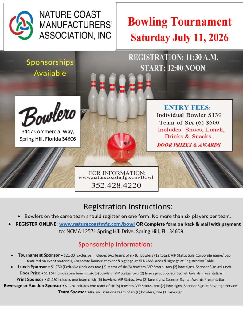 • REGISTER ONLINE: www.naturecoastmfg.com/bowl OR Complete form on back & mail with payment