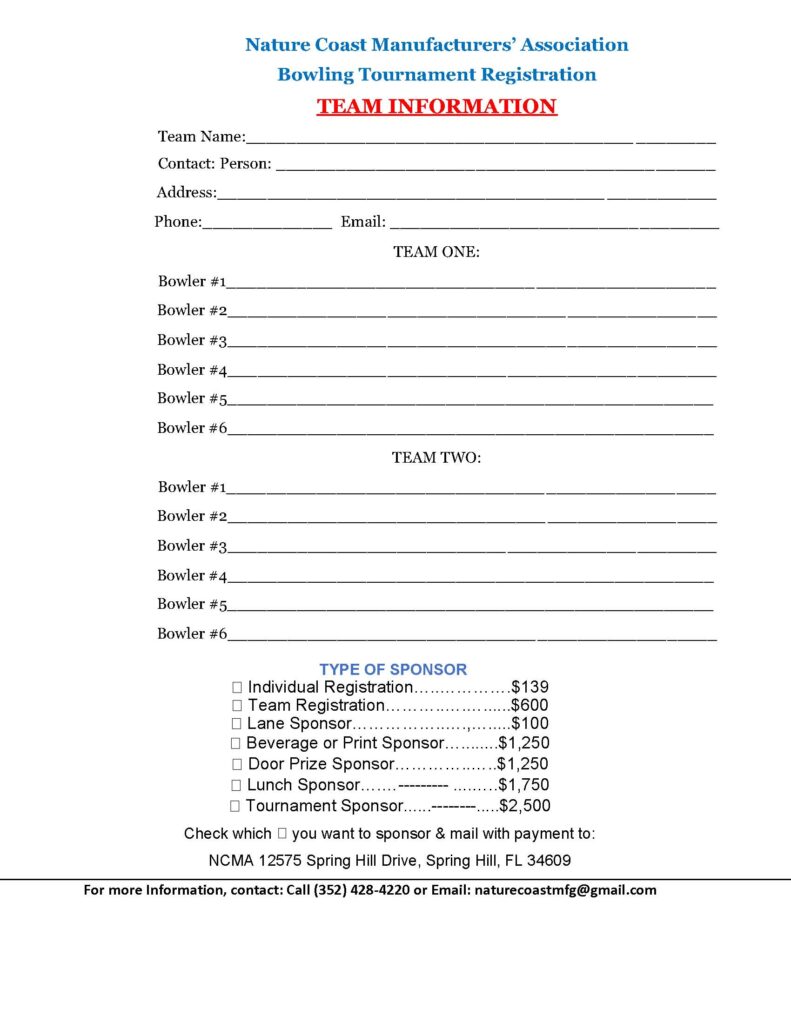 • Bowlers on the same team should register on one form. No more than six players per team.