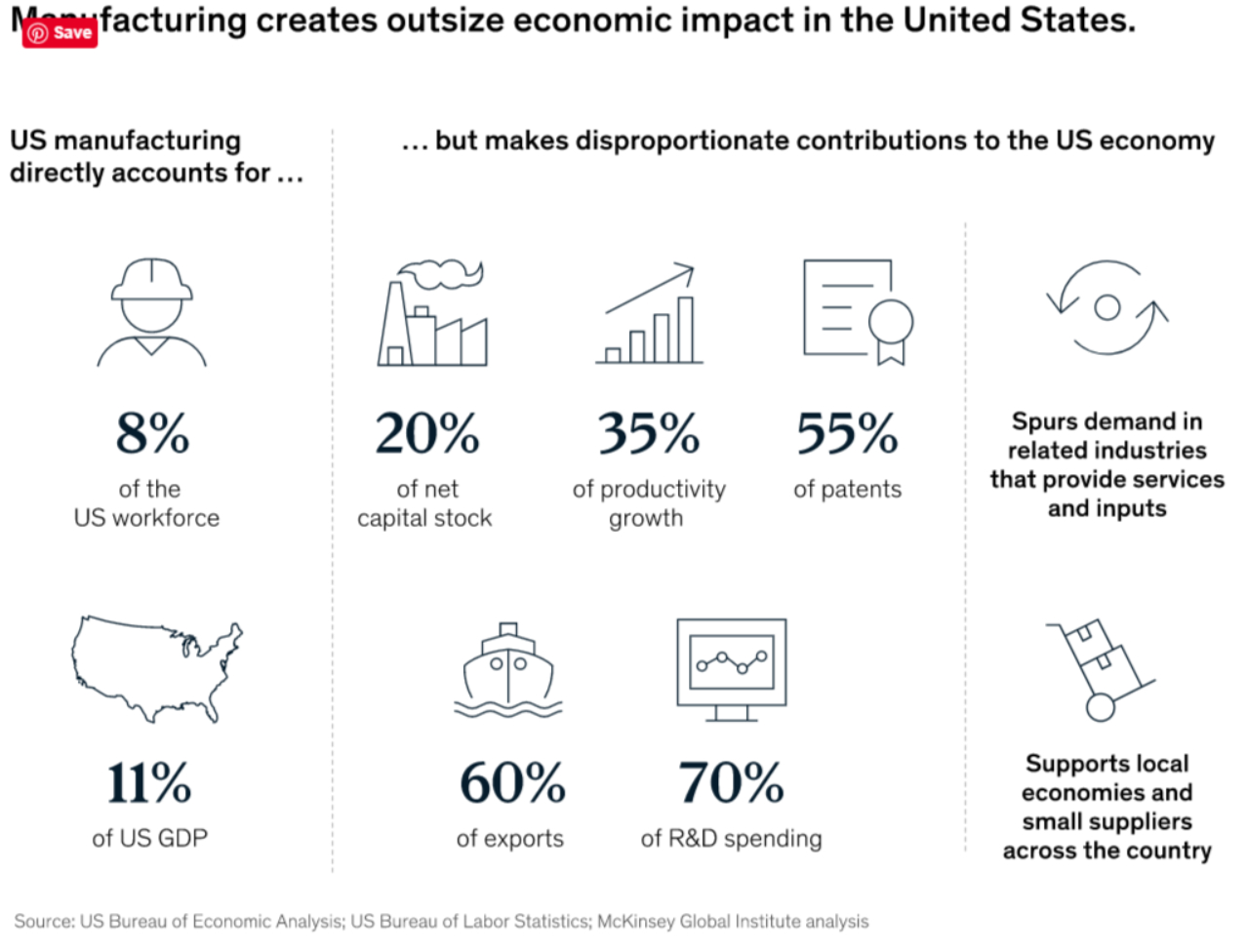 “The stars could be aligning for US manufacturing. There is both public- and private-sector resolve to shore up a sector that has long been an important pillar of the economy. This momentum, combined with technology trends and market opportunities, offers a rare chance to change the existing trajectory—and give the United States a powerful driver for economic recovery, inclusive growth, resilience, and the capabilities of the future.”